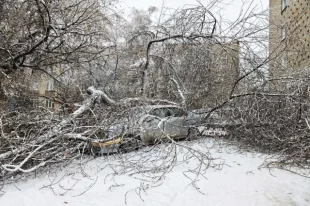 В Новосибирске деревья падают на машины из-за мокрого снега