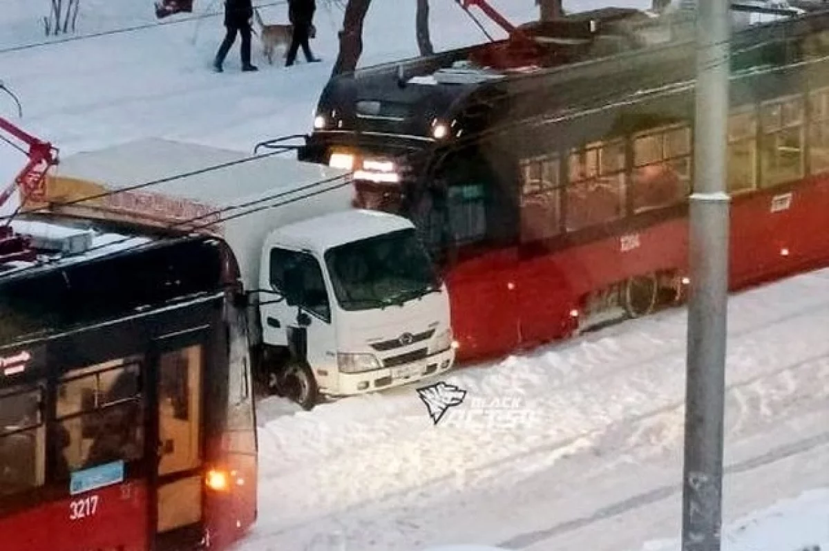 Утром 13 января в Октябрьском районе Новосибирска произошло необычное ДТП, из-за которого остановилось движение трамваев.