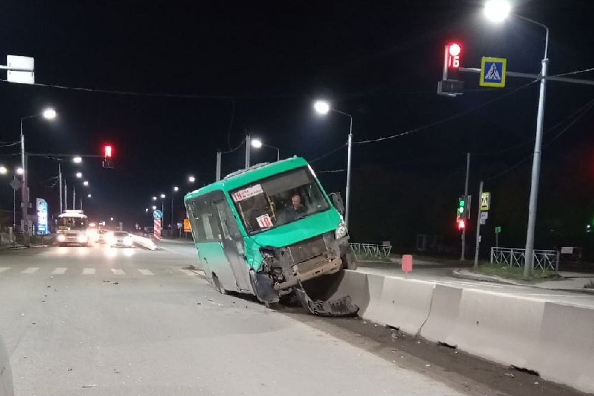 Маршрутка «оседлала» бетонный разделитель в Новосибирске