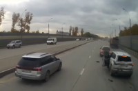 - Он вылетел в поворот, когда уже все тронулись на зеленый и умудрился содрать всю бочину "Ниссану" который ехал в правом ряду. В результате своего виража и оседлал разделитель.