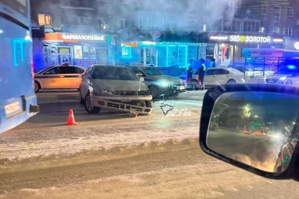 Утром на улице Титова напротив дома №23 произошло дорожно-транспортное происшествие с участием патрульного автомобиля и седана Toyota Corona Premio. Фото с места ДТП опубликовал АСТ-54.