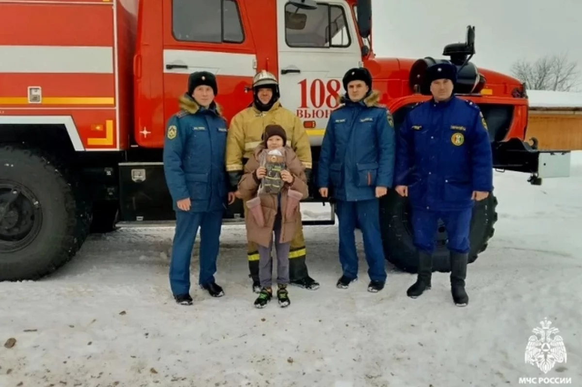 В знак признания храбрости и собранности ребёнка пожарные подарили ему мягкую игрушку — мишку-спасателя.