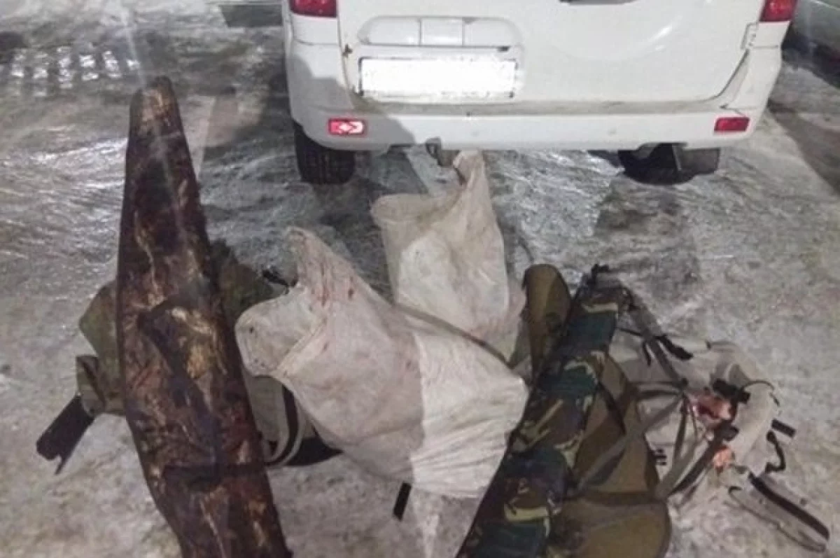 При проверке автомобиля сотрудники полиции обнаружили охотничьи ружья, зарегистрированные в установленном порядке, но это еще не все. В салоне также были найдены пакеты с мясом убитых животных, что вызвало у инспекторов серьезные подозрения.