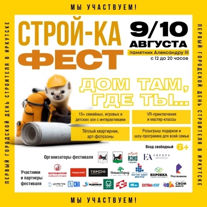 Эта инициатива компании — подарок жителям города к 70-летию Дня строителя, празднование которого пройдет 9 и 10 августа на набережной. На площади в районе памятника Александру III развернется первый городской фестиваль «СТРОЙ-КА ФЕСТ» для застройщиков, дизайнеров и всех, кто увлечен темами ремонта и создания уюта в доме. Организаторами события выступают министерство строительства региона и Ассоциация застройщиков Иркутской области при поддержке администрации города.