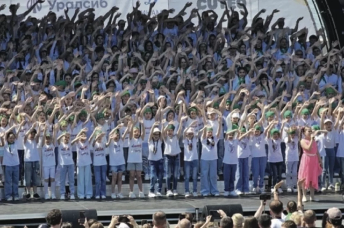 А вот после разминки главная сцена на Михайловской набережной как будто расцвела. Здесь состоялся городской фестиваль детского песенного творчества «Новосибирск – поющая столица». В мероприятии принял участие объединённый хор. В его состав вошли более чем 800 детей – это учащиеся музыкальных и хоровых школ, творческих кружков и домов культуры города и области. Юные таланты исполнили любимые песни о семье, дружбе и мире.