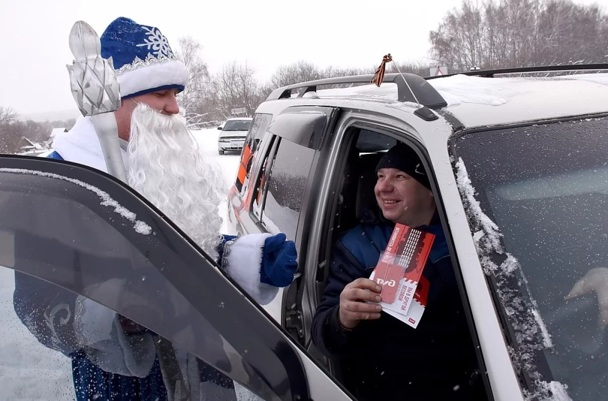 Накануне Нового года профилактические мероприятия прошли в необычном формате – правила безопасности водителям напомнил Дед Мороз. Главный сказочный герой рассказал, как правильно пересекать железнодорожные пути, вручил тематические сувениры.