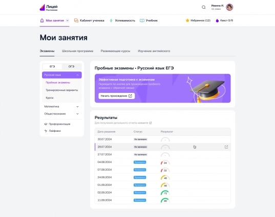 В сервисе можно потренироваться решить актуальные на 2024-2025 год варианты заданий по русскому языку, математике профильного уровня и обществознанию, разработанные Федеральным институтом педагогических измерений. Тестирование проходит на время с использованием формата бланков ЕГЭ, а результаты с подробными комментариями экспертов направляются ученику в течение 72 часов.