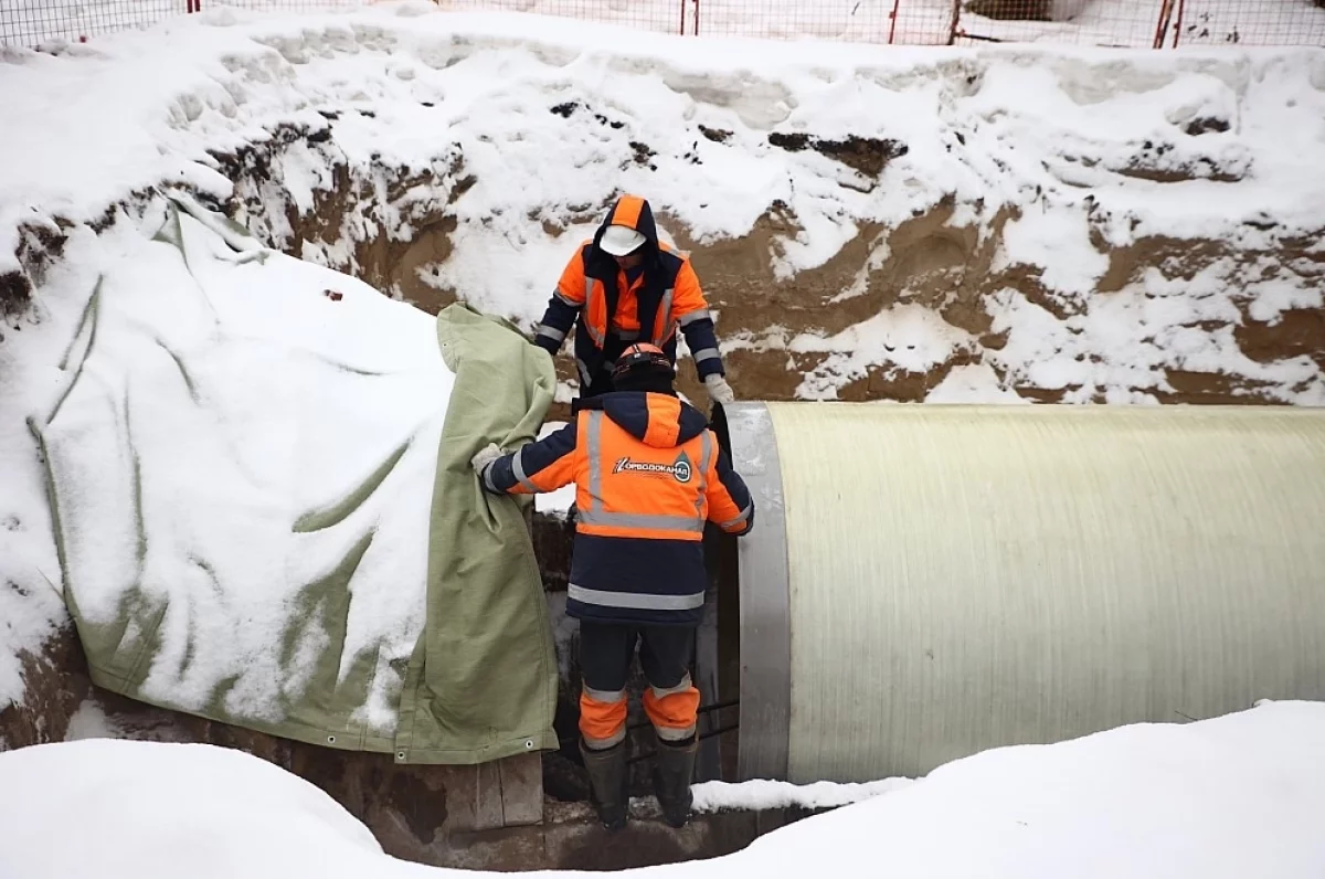 Реконструкция производится только в зимний период – с ноября по март, когда приток сточных вод минимальный. Работы выполняются методом «труба в трубу»: внутри существующего железобетонного коллектора диаметром 2400 мм прокладывают стеклокомпозитные трубы диаметром 2200 мм с заполнением межтрубного пространства бетонной смесью.