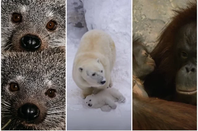 Совсем недавно, 25 декабря, в семье бинтуронгов родились трое малышей — два мальчика и одна девочка. Это второе пополнение вида за год: в июне на свет появились ещё двое детёнышей.