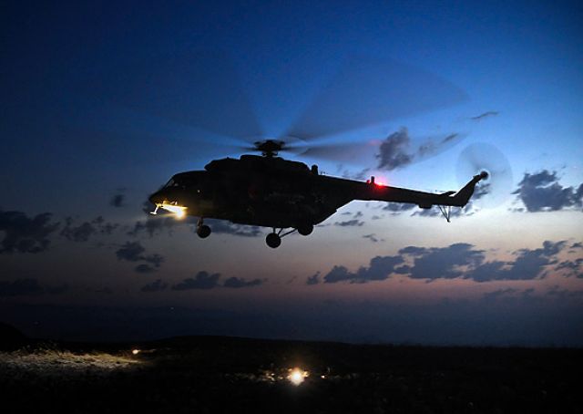 Экипажи вертолетов Ми-8АМТШ-В "Терминатор" и ударных МИ-24 отрабатывали задачи по воздушной разведке, запуску ракет, эвакуации людей и десантированию. Пилоты отработали полеты на сверхмалых высотах, огибая рельеф и посадку на неподготовленные места.